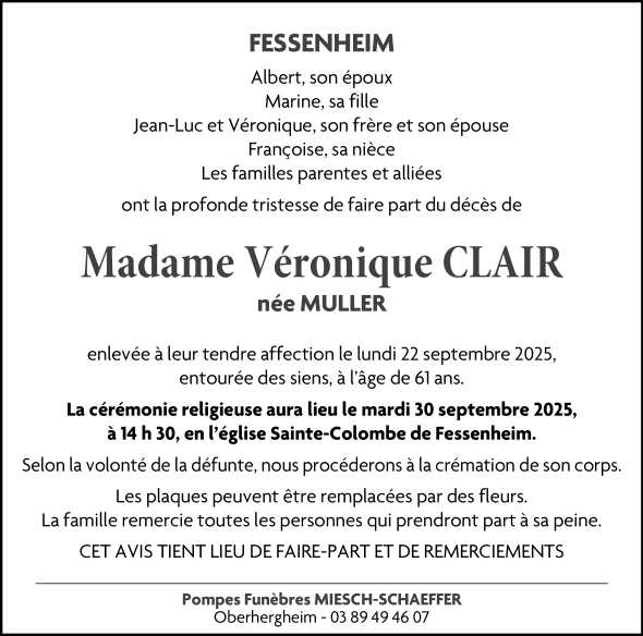Décédée à Colmar (68000, France) le lundi 22 septembre 2025 à l'âge de 61 ans