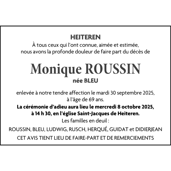 Epouse de Monsieur Christian, Jean-Marie ROUSSIN