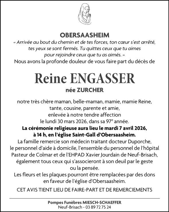 Madame Reine ENGASSER née ZURCHER