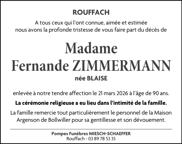 Madame Fernande ZIMMERMANN née BLAISE