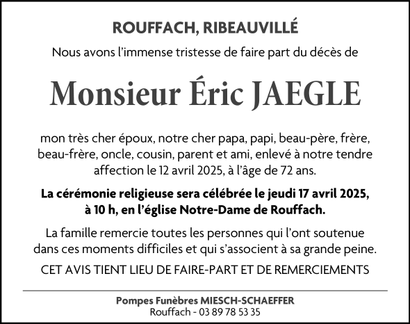 Décédé à Colmar (68000, France) le samedi 12 avril 2025 à l'âge de 72 ans