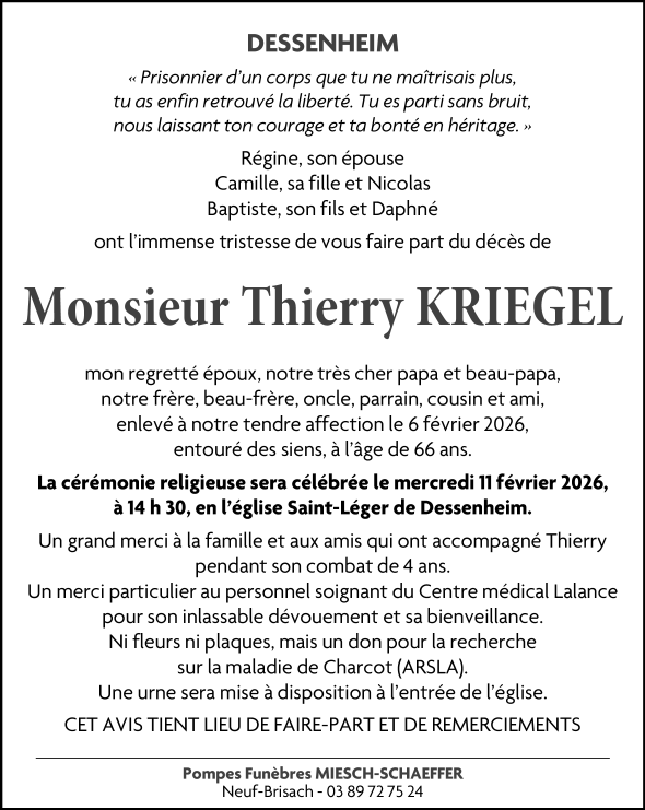 Décédé à Lutterbach (68460, France) le vendredi 6 février 2026 à l'âge de 66 ans