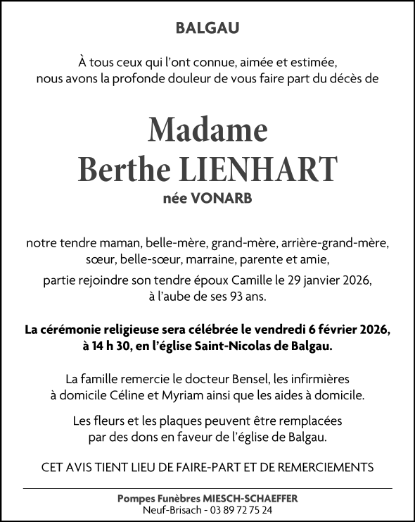 Madame Berthe LIENHART née VONARB