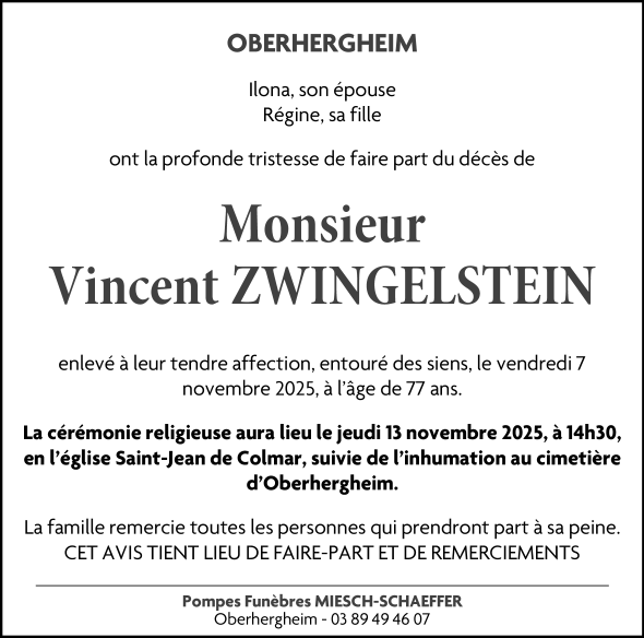 Décédé à Colmar (68000, France) le vendredi 7 novembre 2025 à l'âge de 77 ans