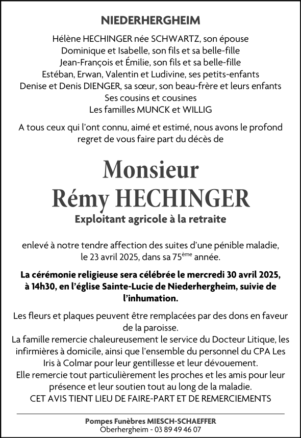 Décédé à Colmar (68000, France) le mercredi 23 avril 2025 à l'âge de 74 ans