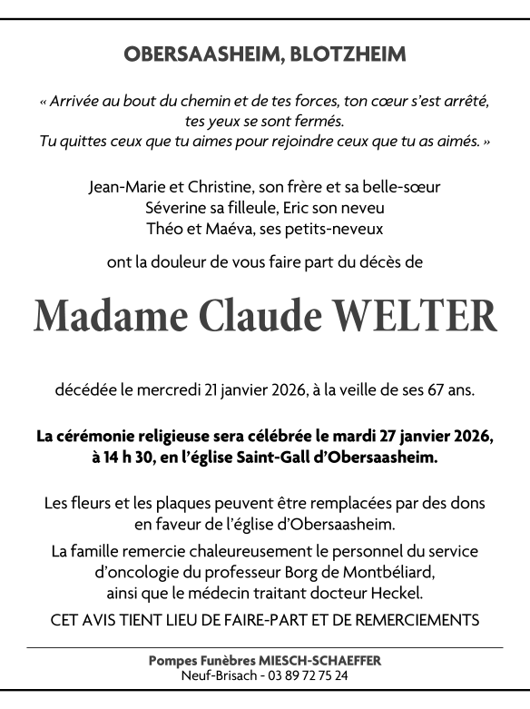 Madame Claude WELTER