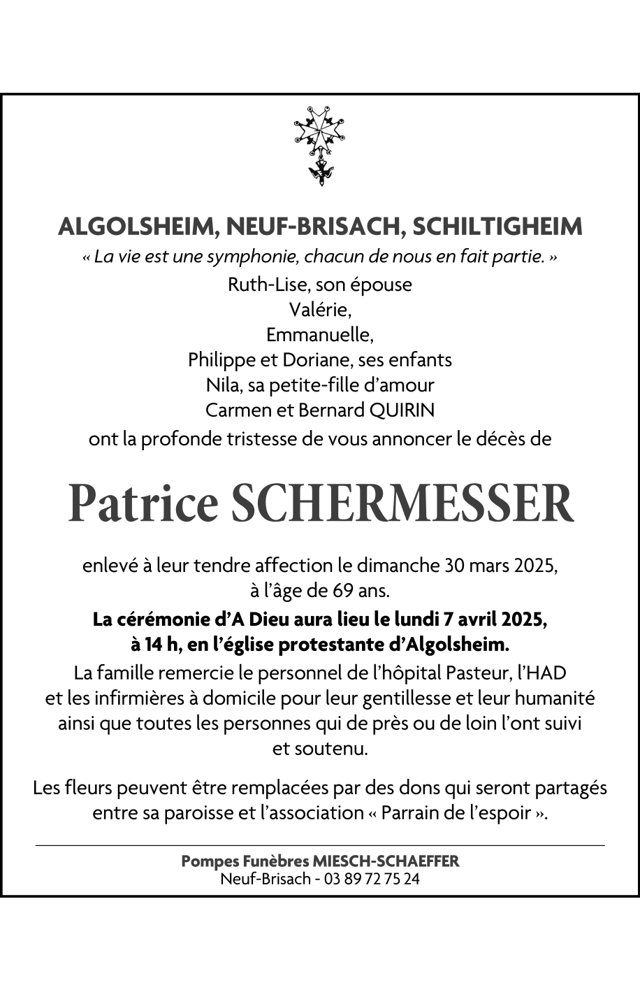 Décédé à Colmar (68000, France) le dimanche 30 mars 2025 à l'âge de 69 ans
